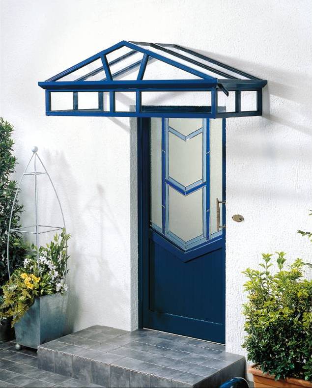 Vordach Modell 1.5 Aluminium Blau Eindeckung klar